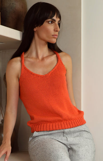 Our Bright Orange Knit Cotton Cami Top, a vibrant and stylish addition to your summer...