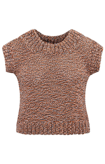 Introducing our Brown and White Mélange Raw Silk Knit Crop Top, a unique blend of...