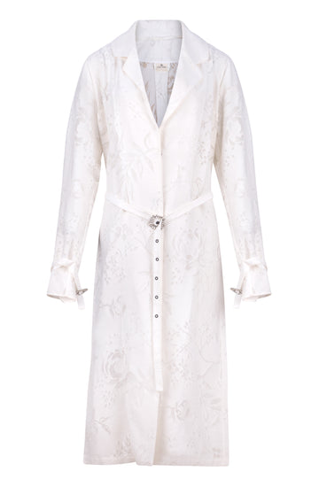 Elegant lace coat with press button closure, collar, belt, buckled sleeves and belt. Lightweight. Perfect...