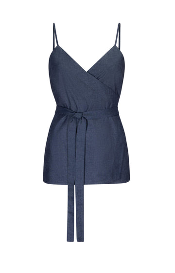 Introducing our denim wrap top, a statement piece designed to elevate your summer wardrobe. Crafted with...