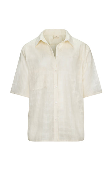Our Cream Coloured Boxy Cotton Voile Checked Shirt, a timeless piece designed for effortless style...