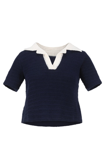 Introducing our handcrafted blue crochet polo shirt, a unique blend of artisanal craftsmanship and effortless...