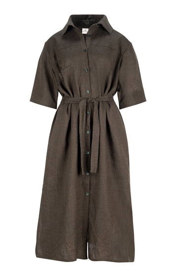 Introducing our effortlessly chic green linen shirt dress, designed for both style and ease. With...