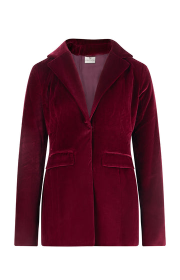 This red velvet tailored jacket is meticulously designed for a perfect fit, combining elegance with...