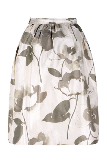 This wide, puffy silk taffeta skirt, adorned with a delicate floral pattern, is designed...