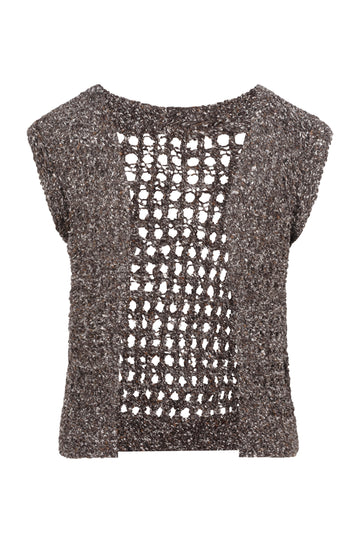 Introducing our Brown Raw Silk White Mélange Yarn Knit Vest, a sophisticated yet breathable piece...