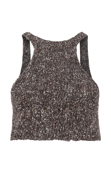 Introducing our Brown and White Mélange Raw Silk Knit Crop Top, a unique blend of...