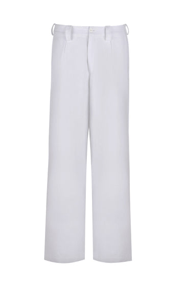 Our beige cotton twill wide-leg trousers offer a modern take on relaxed elegance, crafted for...
