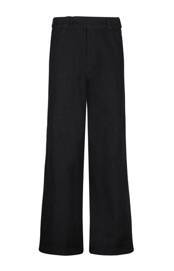 Our navy denim cotton wide-leg trousers offer a modern take on relaxed elegance, crafted for...