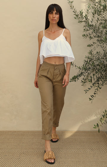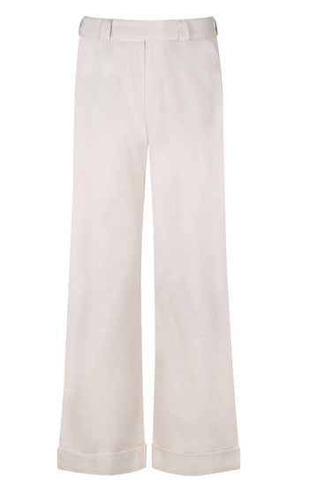 Our beige cotton twill wide-leg trousers offer a modern take on relaxed elegance, crafted for...