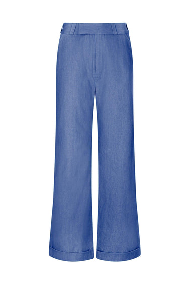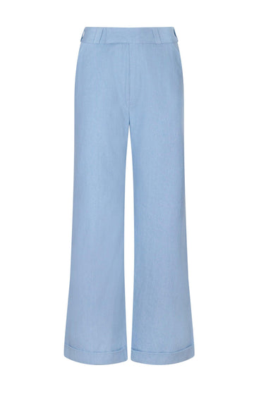 Our best selling slim fit to flare mid-rise trousers now also in mid blue denim...