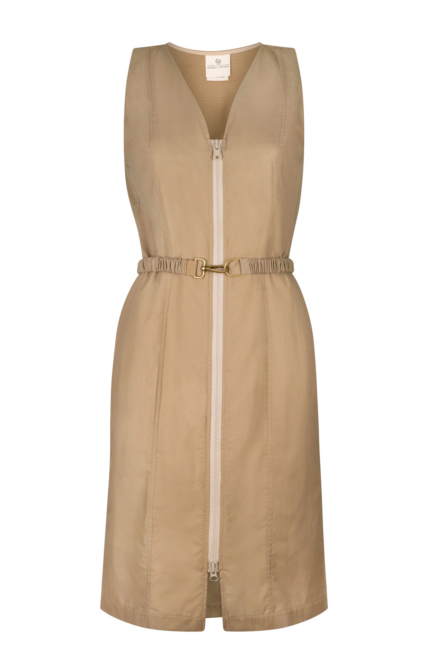 A distinctive double-sided zip runs down the centre front, transforming into a slit from the bottom and allowing you to adjust the neckline to your preferred décolleté. Elegant yet adaptable, it can be worn beautifully on its own or styled with our light blue and white striped linen-cotton shirt for a fresh, layered ensemble that moves seamlessly from day to evening.