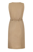 The sleeveless design adds versatility for warm-weather wear or layered styling. Effortless and elegant, this dress is a refined summer wardrobe essential that combines comfort with contemporary style.