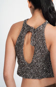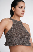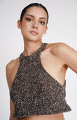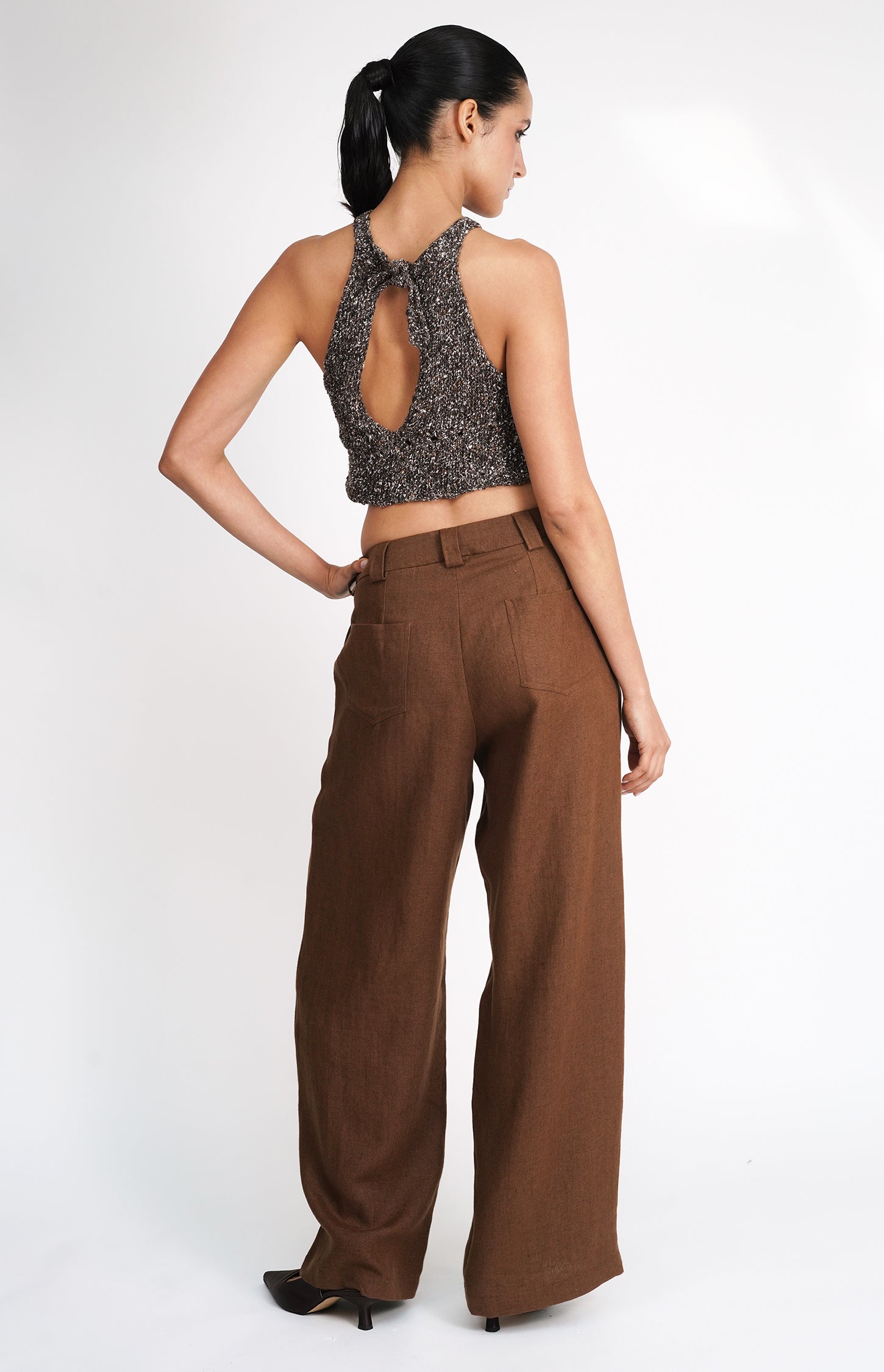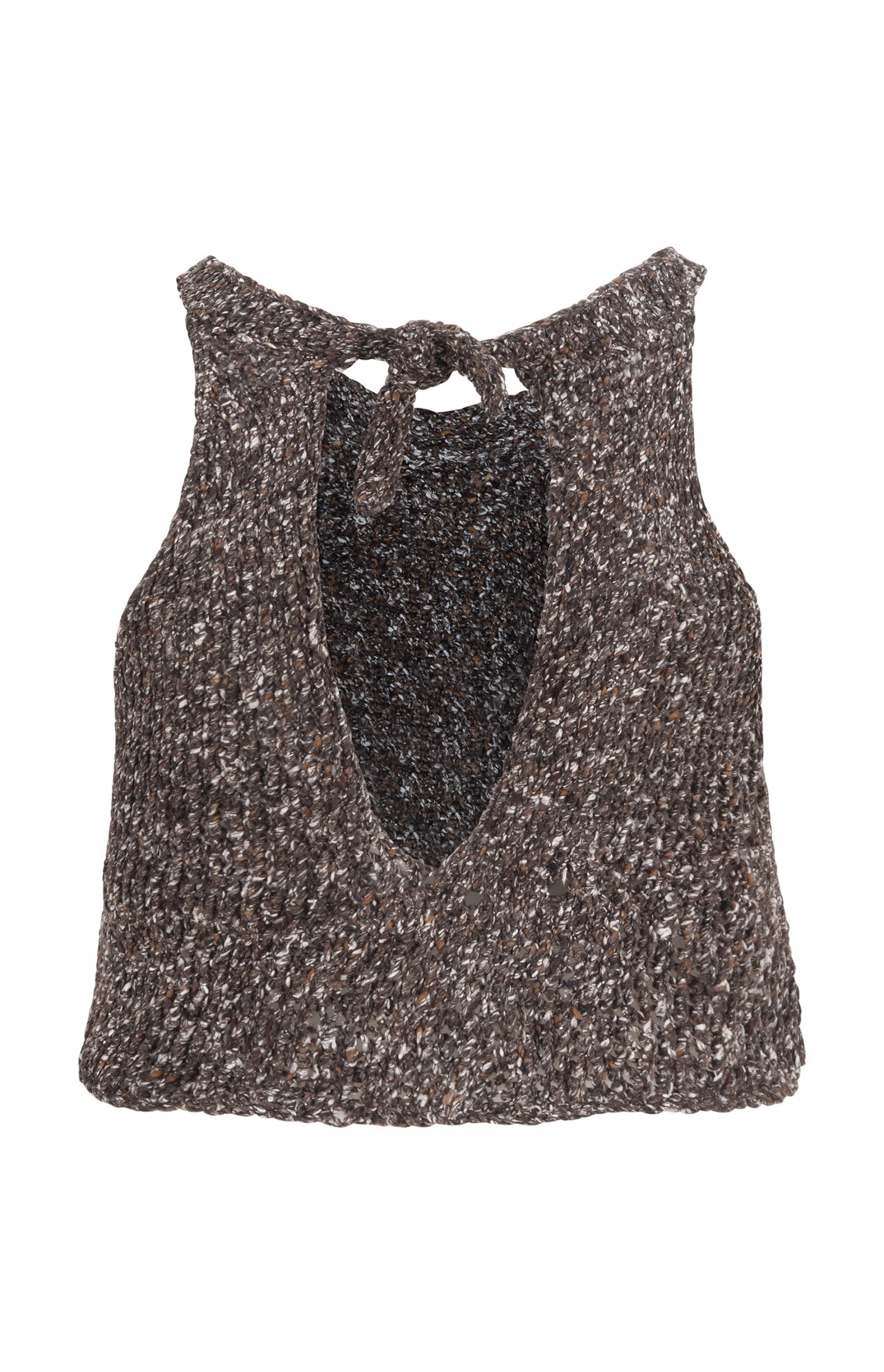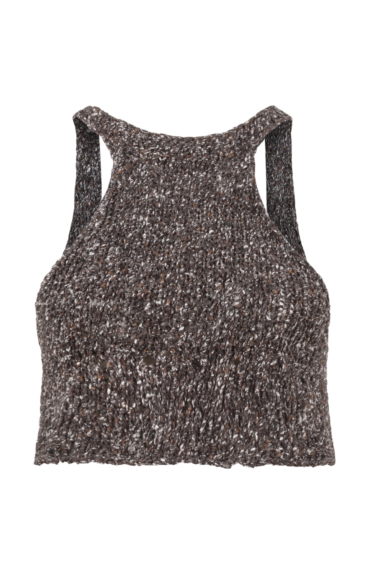 Introducing our Brown and White Mélange Raw Silk Knit Crop Top, a unique blend of texture and elegance. The eye-catching eyelet pattern adds a delicate touch, while the open back design brings a modern, sultry twist. Made from luxurious raw silk, this top feels as soft as it looks, offering a comfortable yet stylish fit.