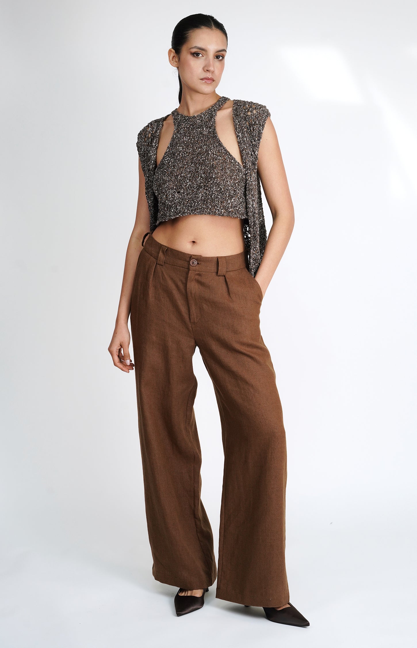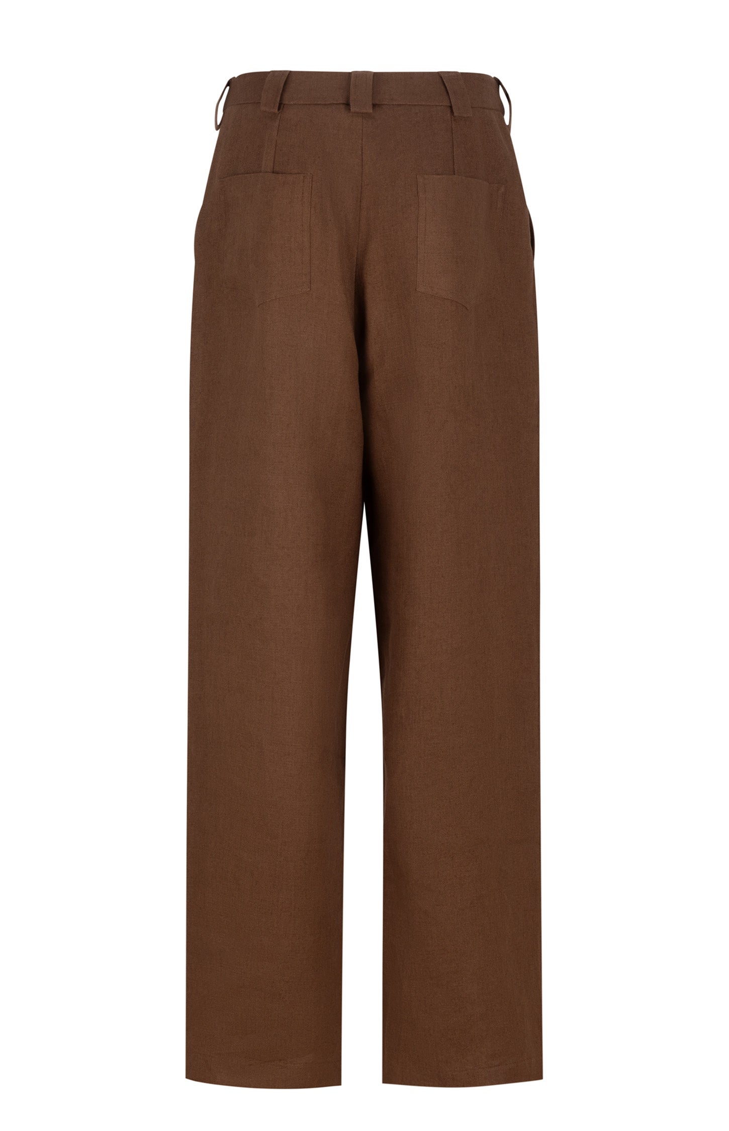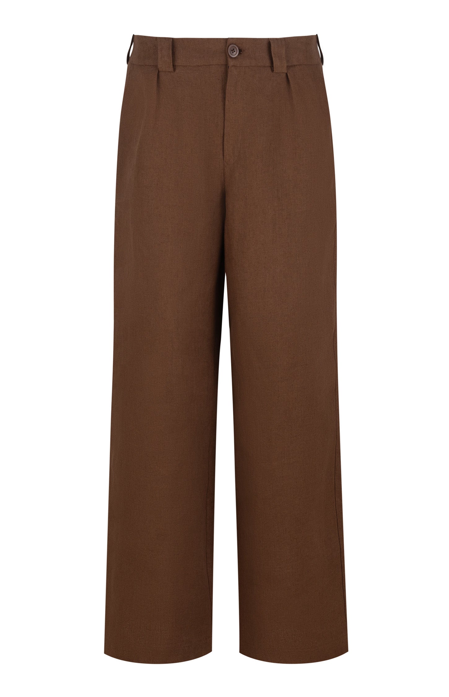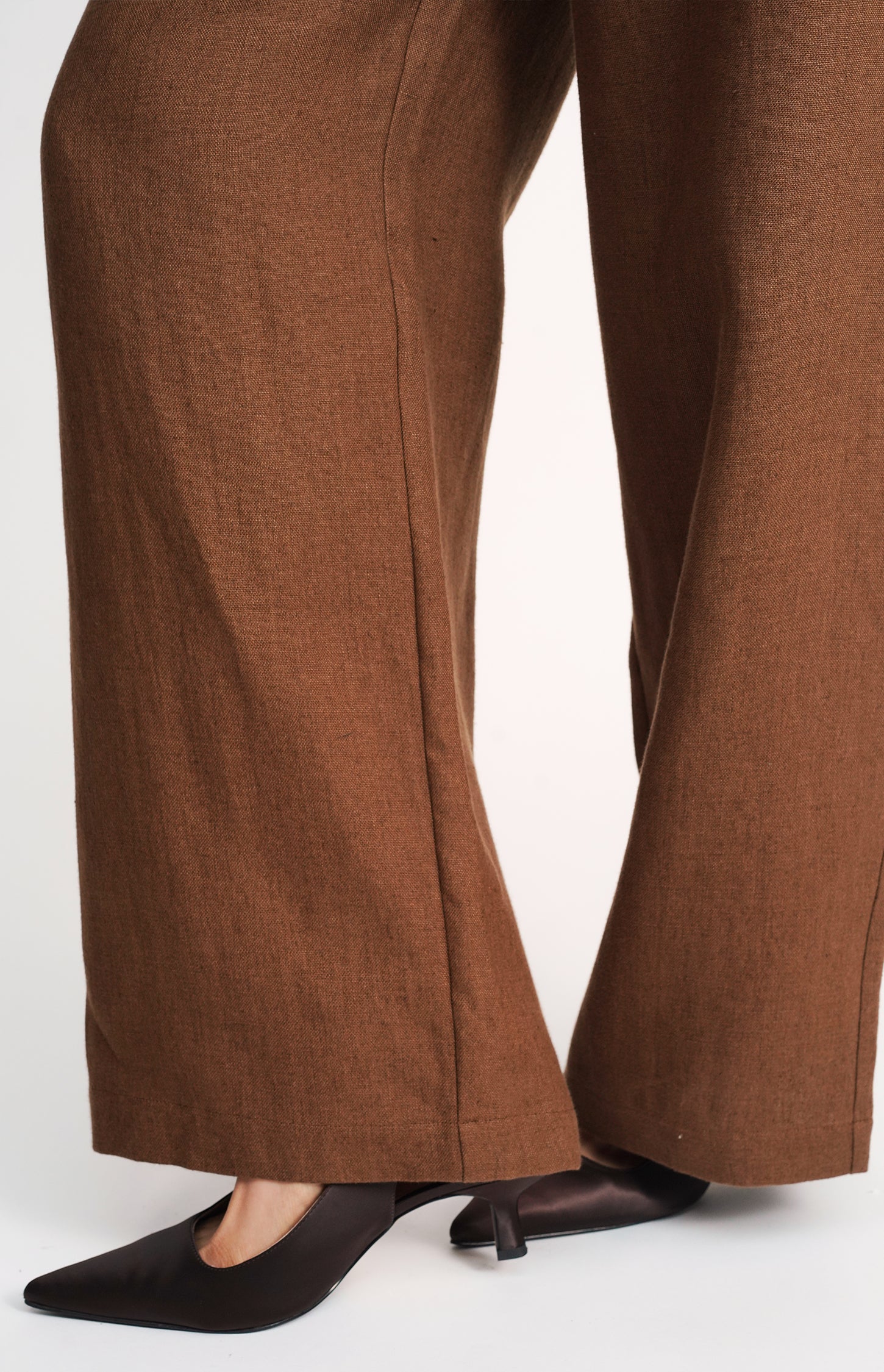 Introducing our Wide Leg Brown Linen Trousers, designed to offer effortless style and comfort. Crafted from lightweight linen, these trousers feature a flattering wide-leg silhouette that moves with ease. The slanted front pockets provide practicality, while the patch back pockets add a casual touch to the design.