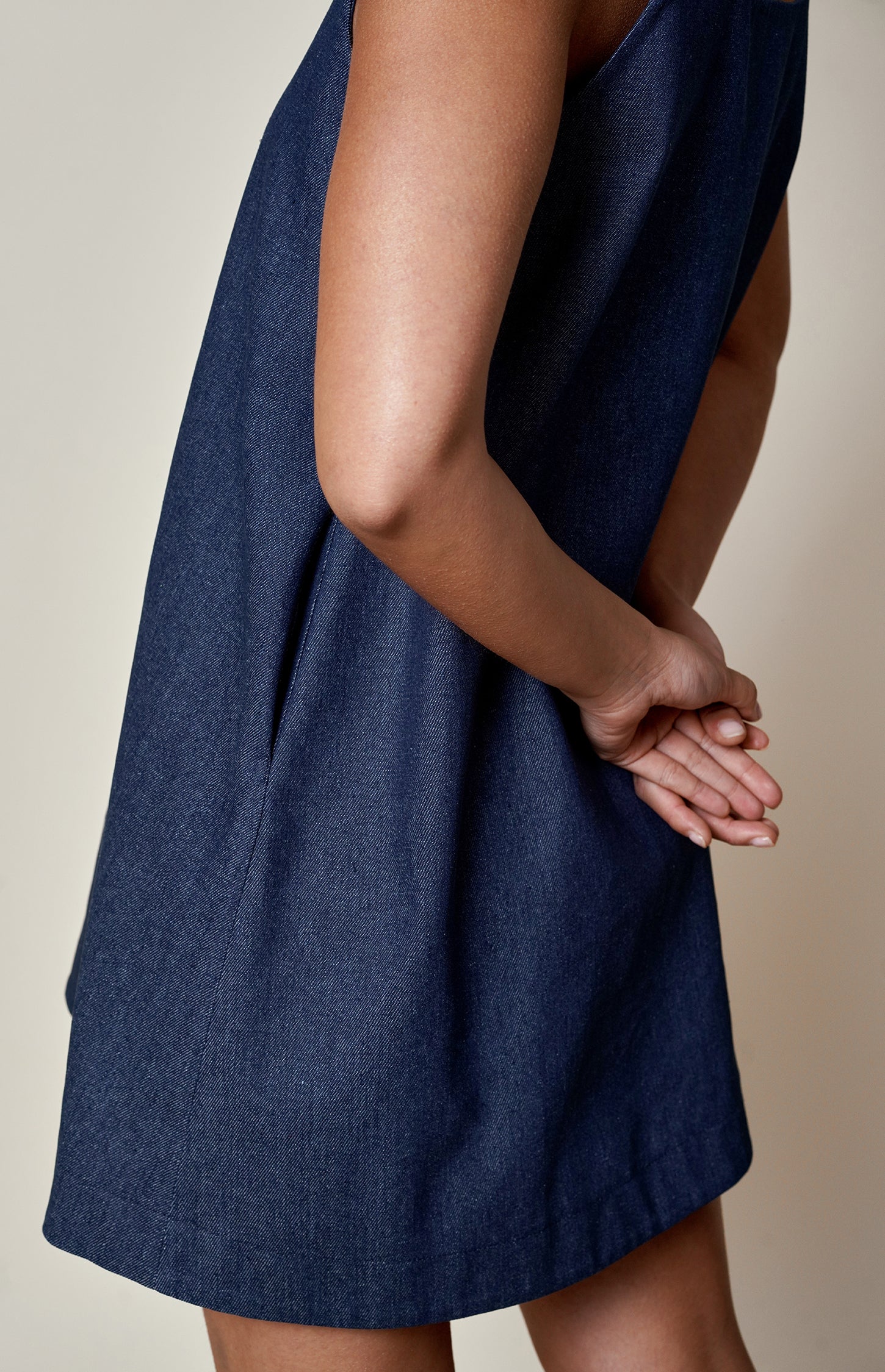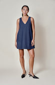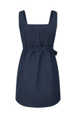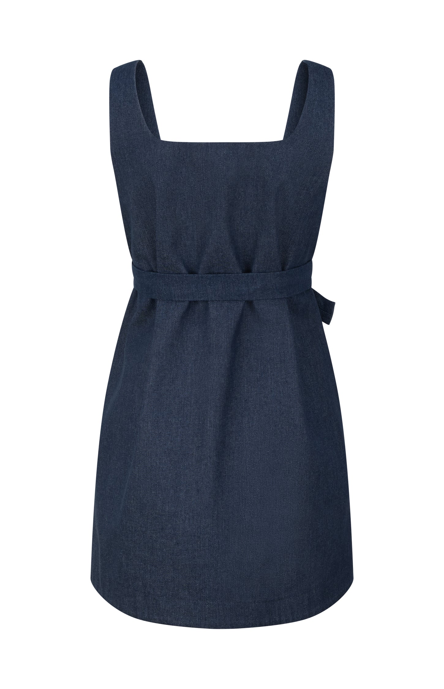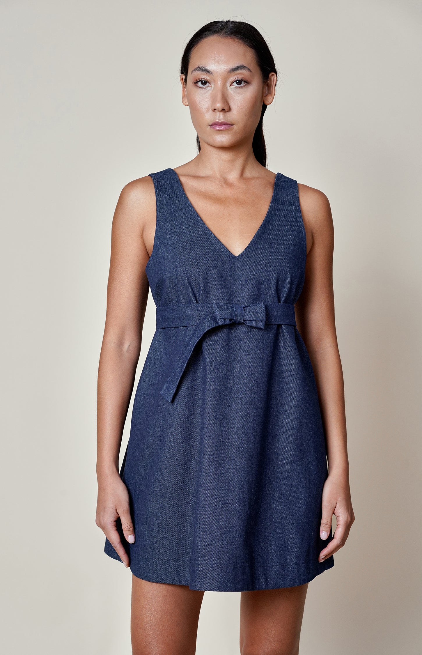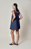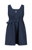 Our denim sleeveless mini dress features a flattering A-line silhouette and a versatile bow belt that can be fastened under the bust or at the waist. Ready-to-wear and designed for effortless style, it combines relaxed ease with contemporary elegance, making it a chic, adaptable addition to any wardrobe.