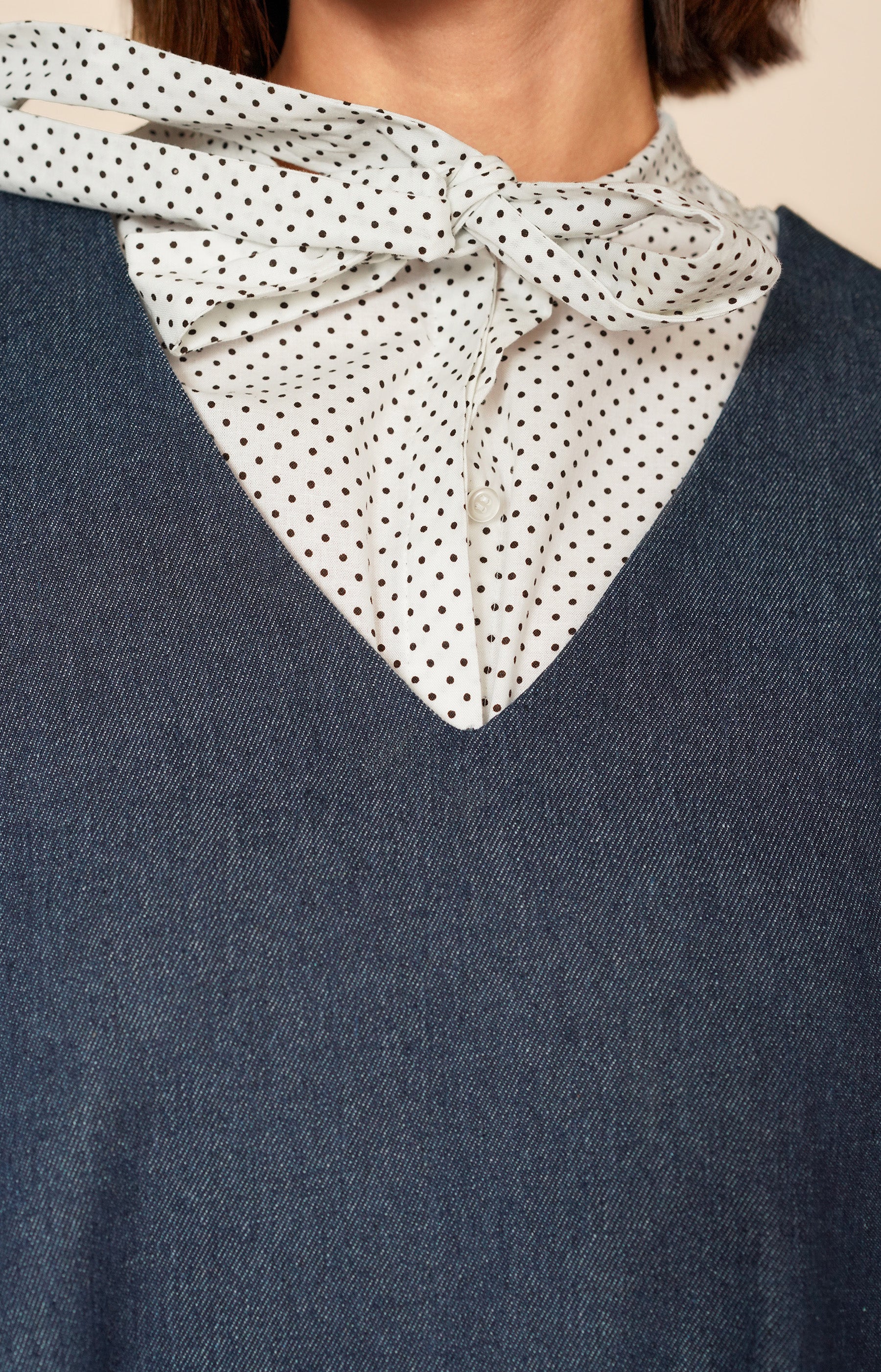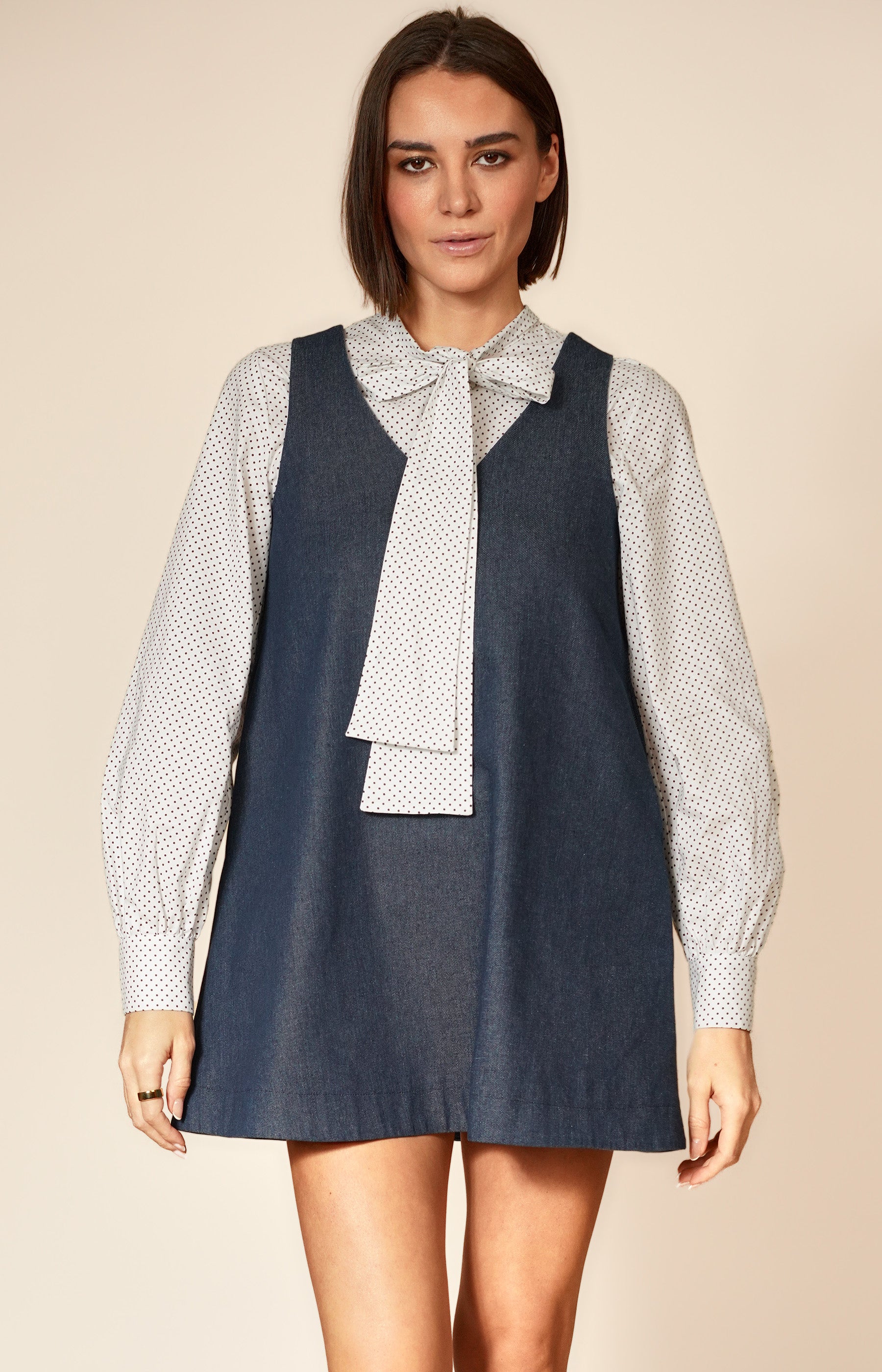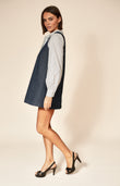 Chic and versatile, this sleeveless mini dress is crafted from structured cotton denim, offering a flattering A-line silhouette with relaxed ease. Designed with a bow belt that can be fastened under the bust or at the waist, it allows for personalised shaping while maintaining effortless style.