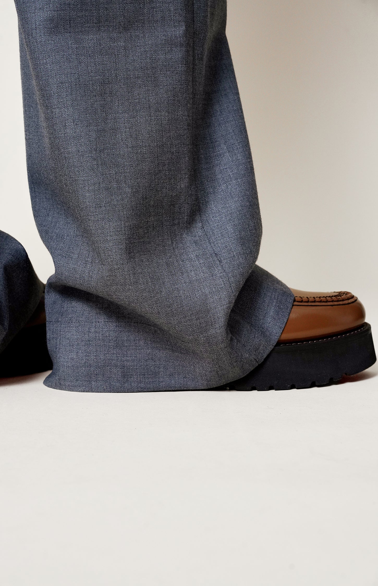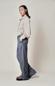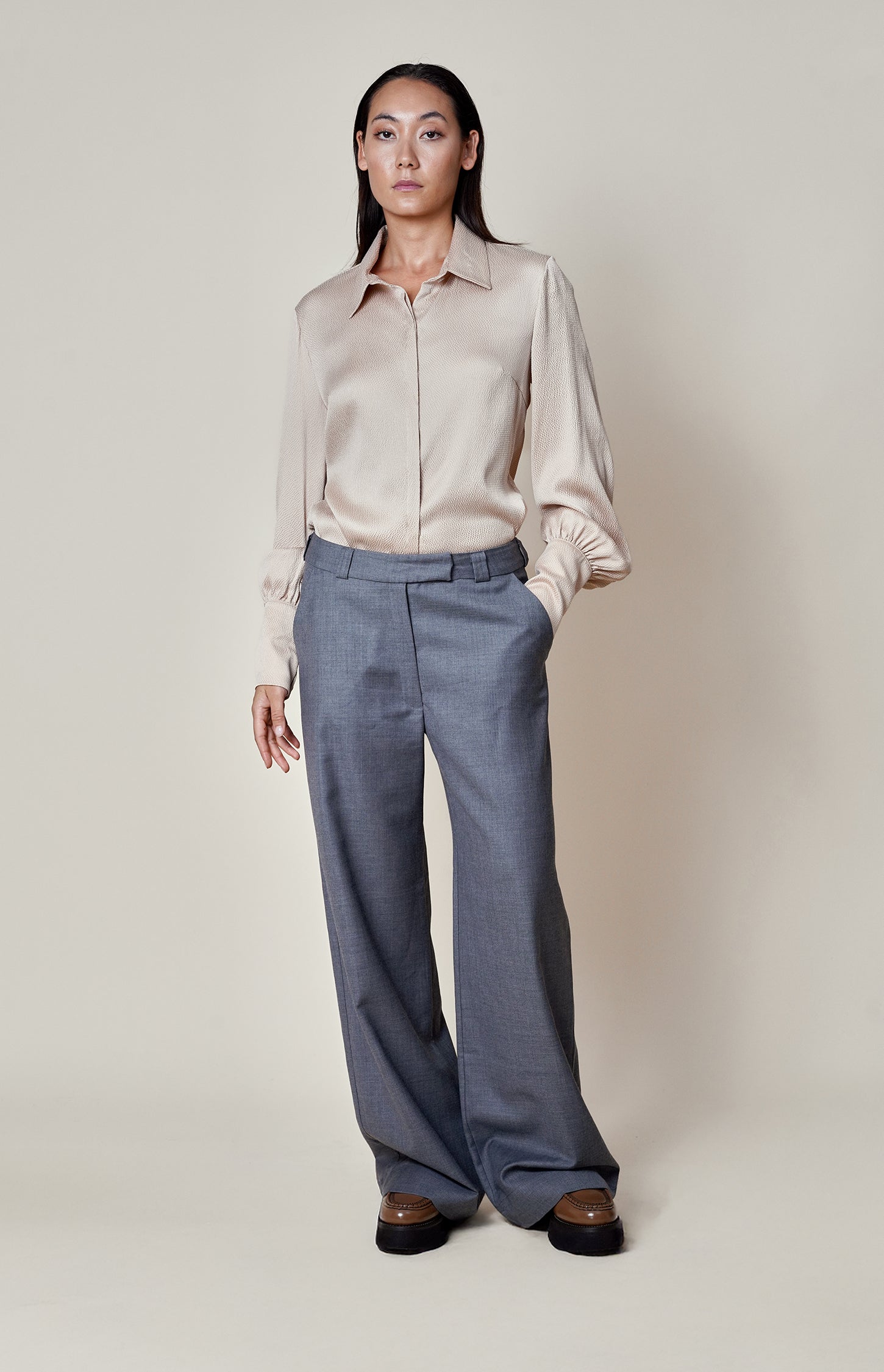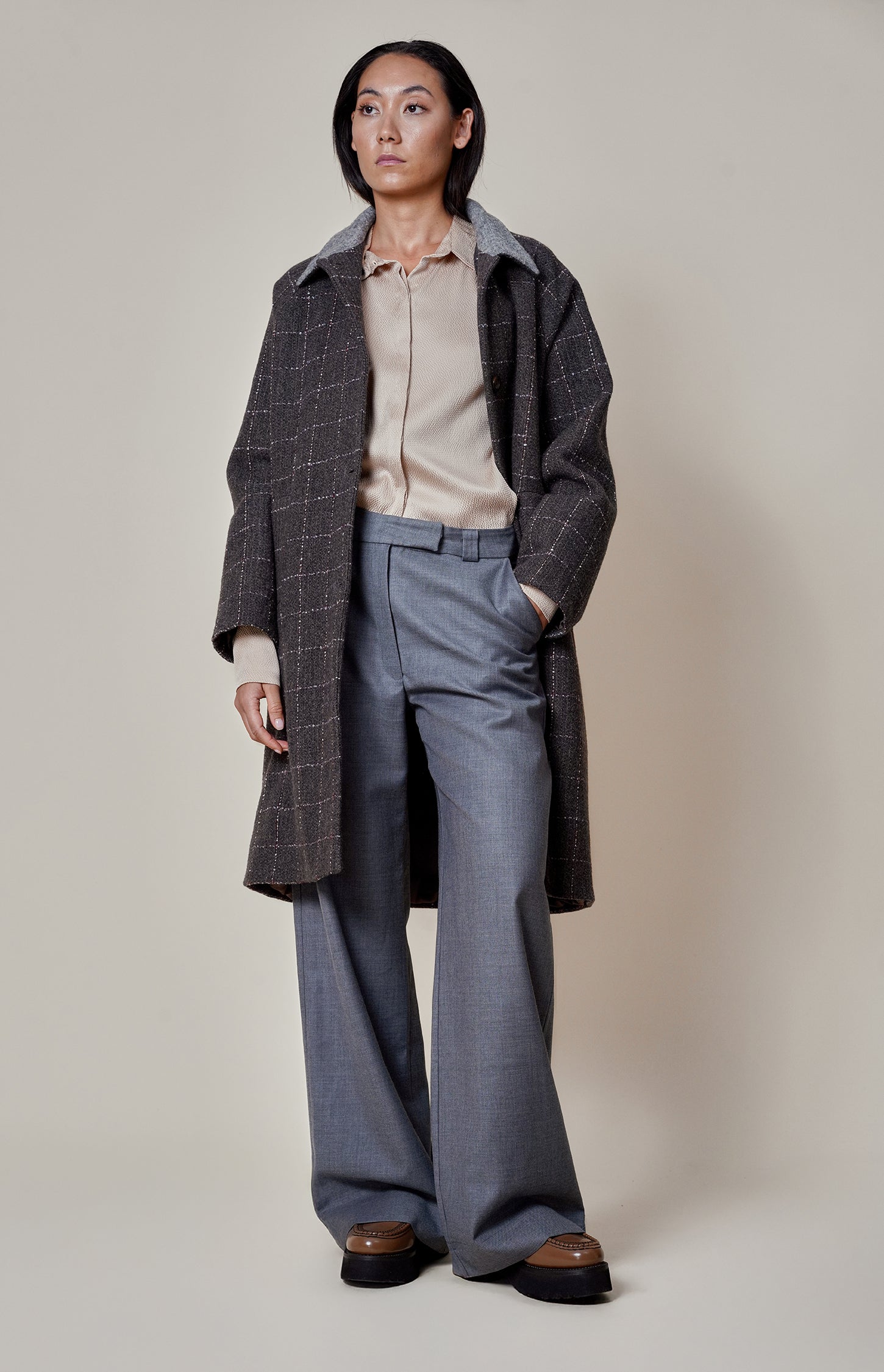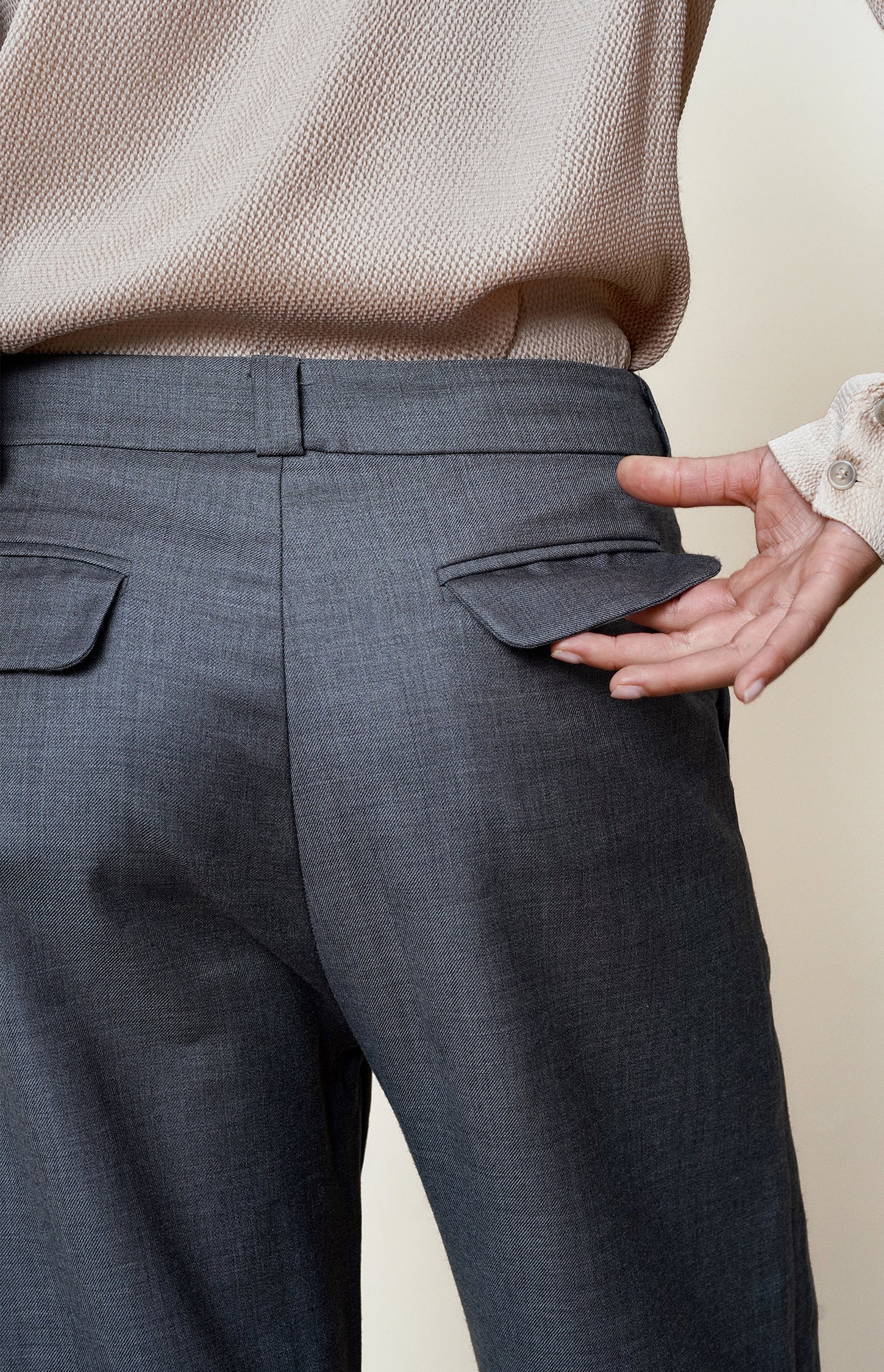Our timeless wide-leg trousers, a classic wardrobe staple reimagined for ultimate comfort and style. Crafted from 100% high-quality merino wool, these trousers offer unparalleled coziness and sophistication. Designed with a mid-rise fit, they feature a sleek side hook fastening and four generously sized pockets, merging fashion with functionality. The attention to detail ensures a refined look suitable for any occasion.