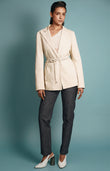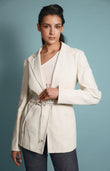 The Light Blue Denim Tailored Jacket. Crafted with meticulous attention to detail, this jacket exudes both style and sophistication.Made from high-quality light blue denim, this jacket offers a timeless yet contemporary look that effortlessly transitions from day to night. The tailored fit ensures a flattering silhouette, while the jet pockets add a touch of modern elegance.Inside, you'll find a luxuriously soft viscose lining, providing both comfort and durability. Whether you're layering it over a casual tee or dressing it up with a blouse, this versatile jacket is sure to become a staple piece in your collection.Elevate your ensemble with the Light Blue Denim Tailored Jacket and embrace effortless style wherever you go.