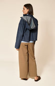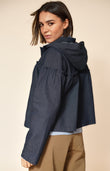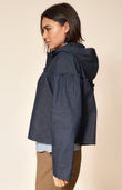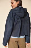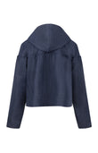 Navy Denim Cotton Jacket With Hood