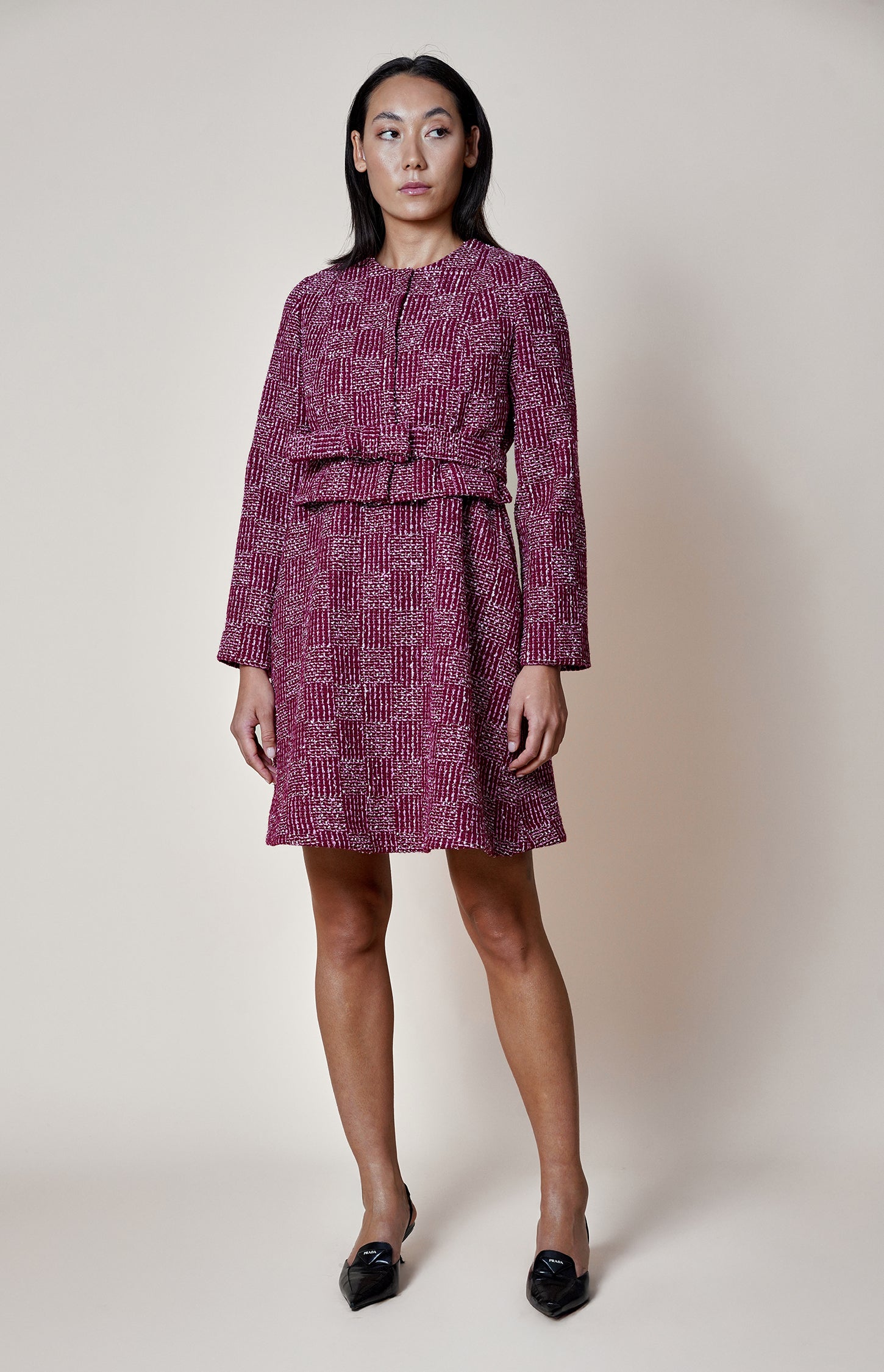 Wine Cropped Tweed Jacket