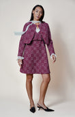 Offered in rich burgundy and deep navy tweed, this piece is designed for effortless coordination—whether styled with its matching sleeveless dress for a statement ensemble or paired with tailored trousers for modern sophistication. Each jacket is a testament to craftsmanship, lending a touch of couture polish to any wardrobe.